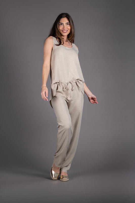 Conjunto túnica larga y pantalón en neocrepe crudo