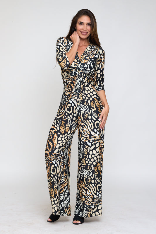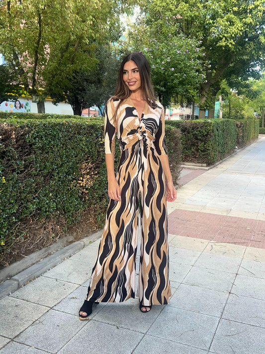 Conjunto túnica larga y pantalón en neocrepe marron chocolate