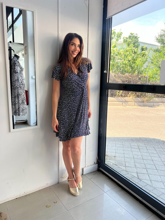 Vestido corto wrap topos estampado topitos fondo marino