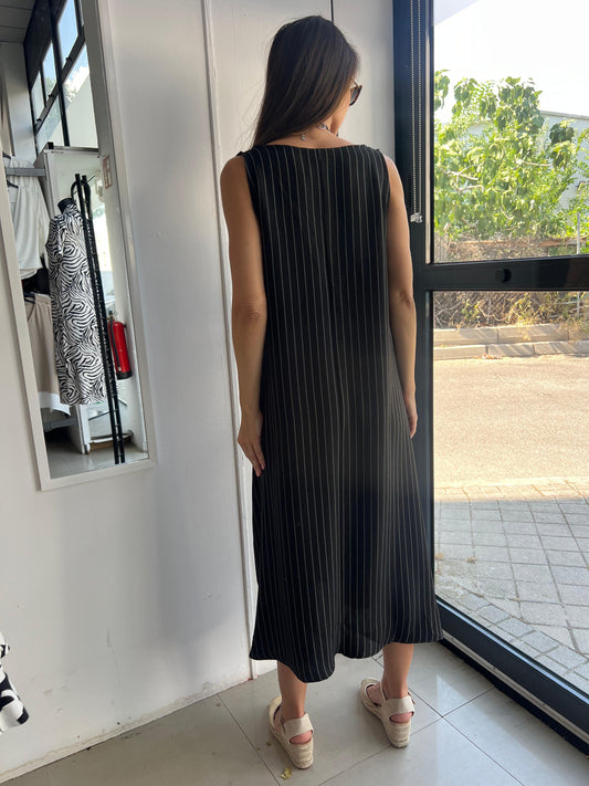 Vestido de tirantes en simil lino color negro con raya diplomática