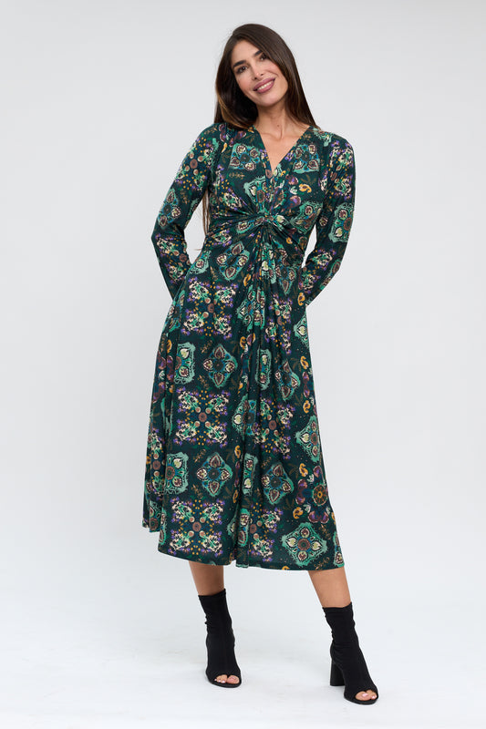 Vestido Midi escote pico estampado verde/azul