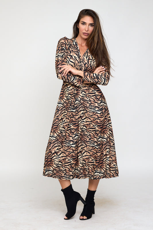 Vestido midi nudo estampado animal