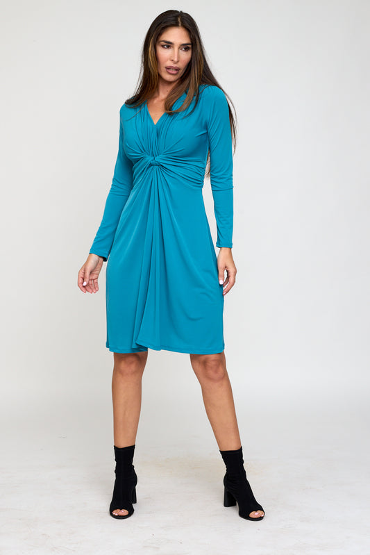 Vestido corto nudo manga larga liso azul