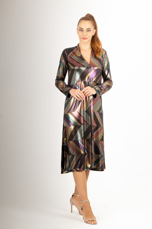 Vestido Midi escote pico tejido brillo especial fiestas