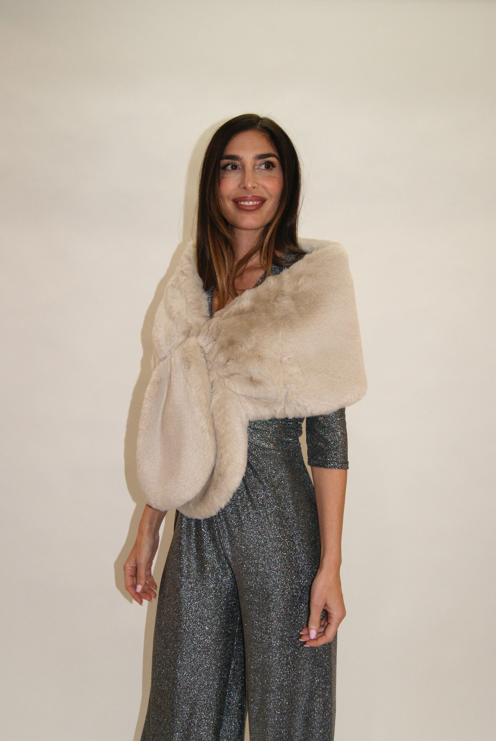 Estola beige de pelo sintética para eventos – El complemento perfecto para Navidad y Nochevieja (Copia)