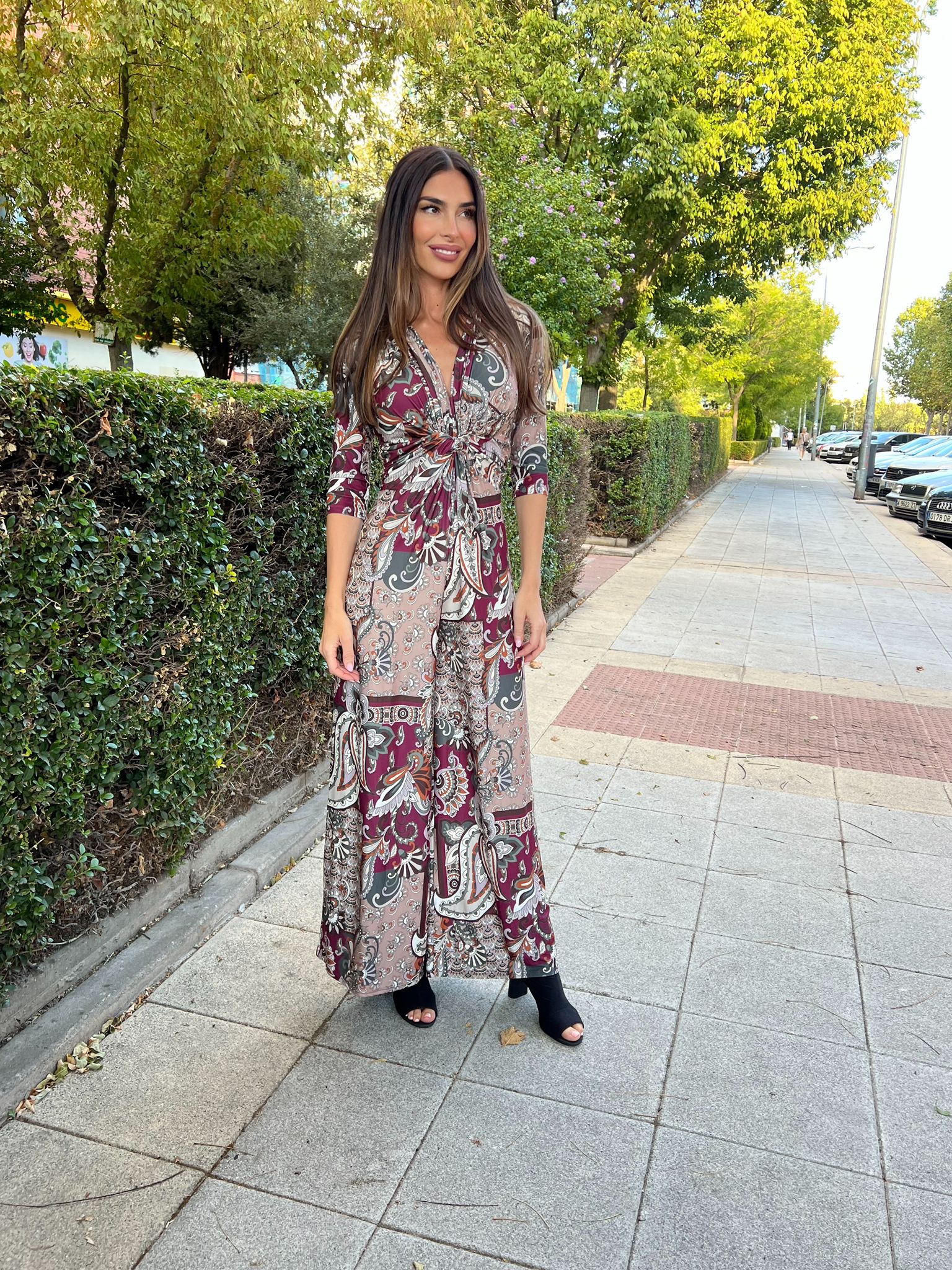 Las mangas francesas añaden un toque de sofisticación y estilo. Y el pantalón palazzo, confeccionado en un exquisito tejido de punto de seda estampado, brinda comodidad y suavidad al contacto con la piel.