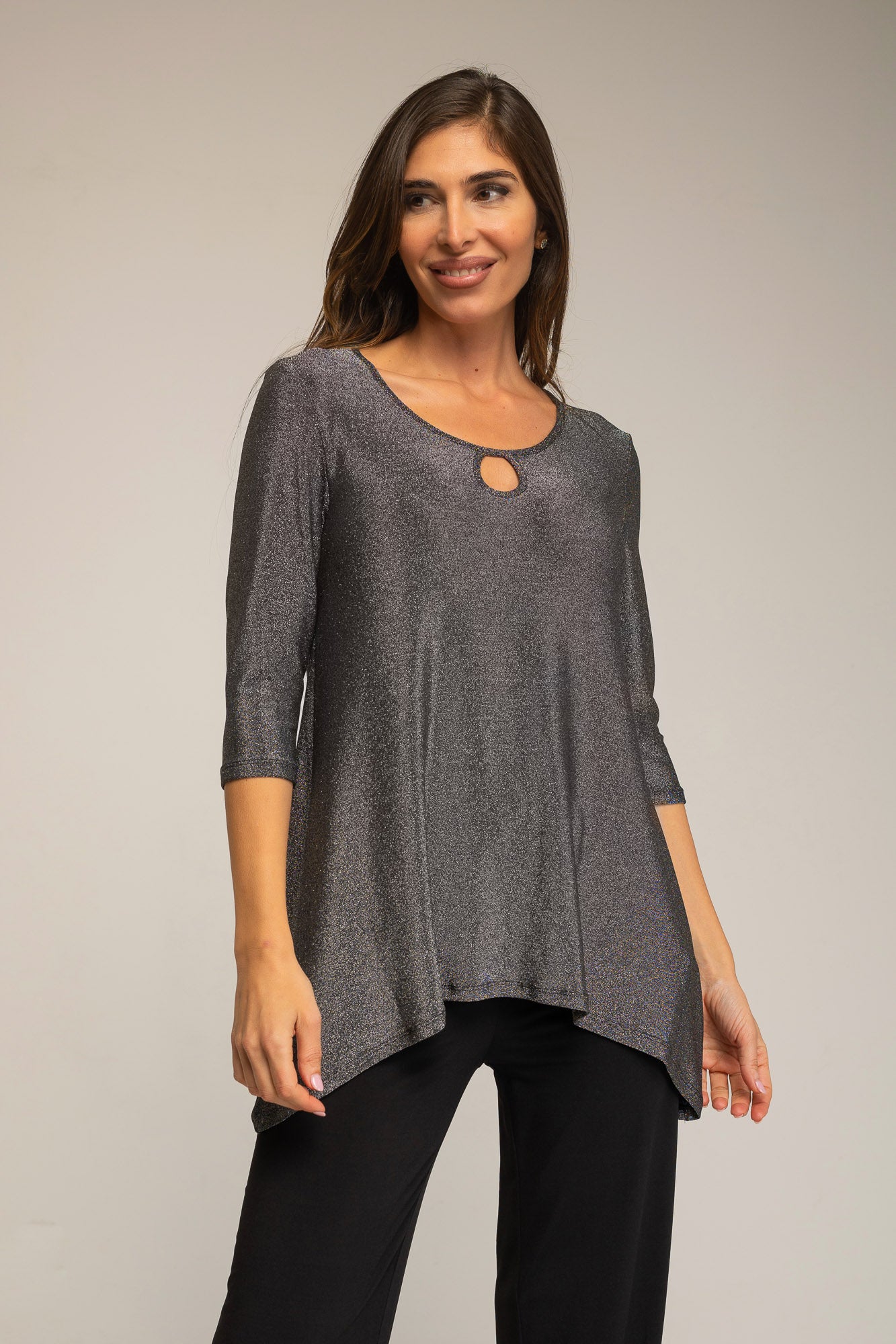 Túnica manga 3/4, escote redondo con abertura en el centro